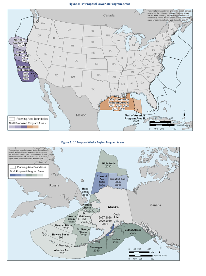 On November 20, the Department of the Interior released President Trump’s new offshore drilling lease plan, the 11th National OCS Oil and Gas Leasing Draft Proposed Program. The proposal includes as many as 34 potential offshore lease sales across 21 of 27 existing Outer Continental Shelf planning areas, covering approximately 1.27 billion acres. It includes 21 areas off the coast of Alaska, seven in the Gulf of America (GOA) including portions of the Eastern gulf (Program Area B), and six off of California.
